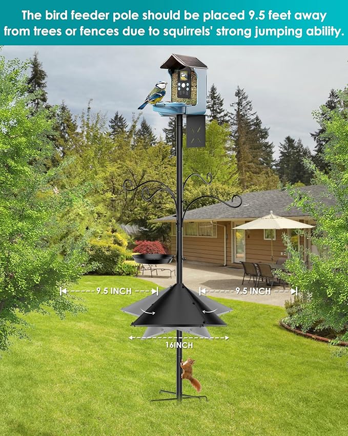 - 18-Inch Squirrel Baffle: The squirrel baffle is made of high-density, ultra-tough PP plastic, and the surface has been polished. The larger size increases stability, effectively preventing pesky squirrels from stealing bird food, while also making it easy to clean