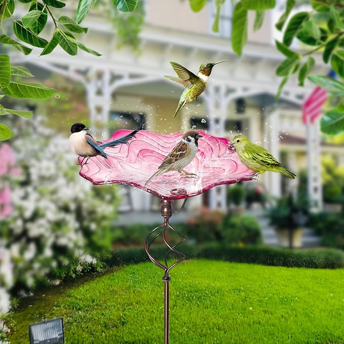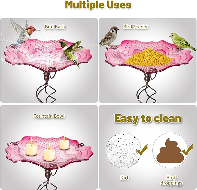 - [High-quality Design] HONGLAND 31-inch red glass bird bath with durable metal stand ensures stability and is not easy to tip over. It is very suitable for outdoor use and is your ideal bird bath for outside.