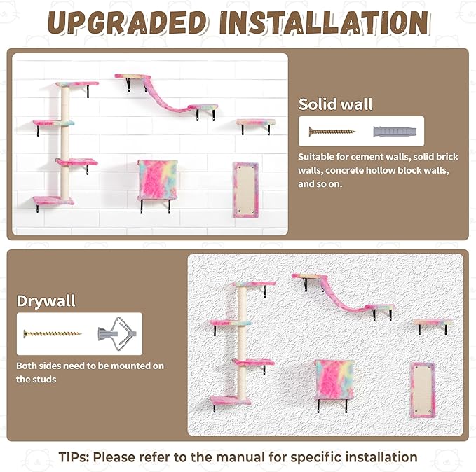- 【Easy Installation】: Our beige cat wall shelves can blend well into most styles of home decor. All parts are labeled and pre-drilled, you can easily fix this set to the wall with the detailed manual. Perfect as a gift for cat lovers.
