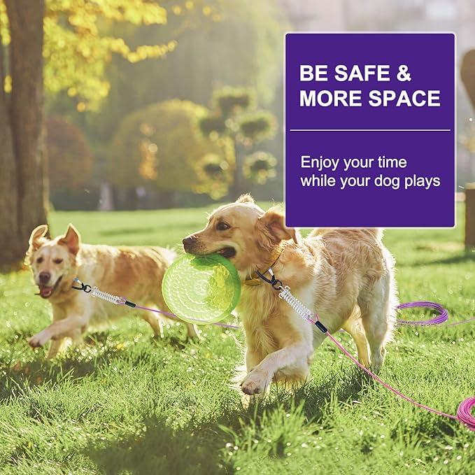- High Strength and Secure Hook: The cable are equipped with a lockable clip, ensuring that your dog stays securely attached while enjoying freedom to roam. The innovative 360° rotating design prevents tangling, allowing your furry friend to move freely without getting stuck