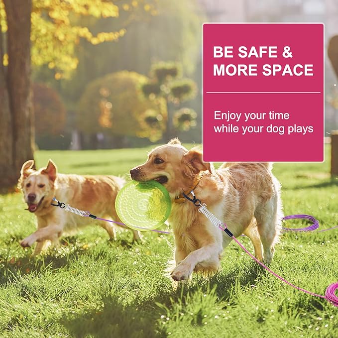 - High Strength and Secure Hook: The cable are equipped with a lockable clip, ensuring that your dog stays securely attached while enjoying freedom to roam. The innovative 360° rotating design prevents tangling, allowing your furry friend to move freely without getting stuck