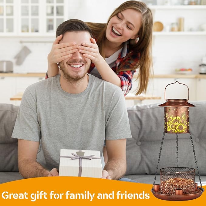 - 【Exquisite Hummingbird Feeder】It is not only a bird feeder for outdoors hanging, but also a Solar garden lantern at night.The light shines through the hollow pattern, adding a beautiful breath, Nice present for bird lovers and Beautiful decoration for your garden or backyard, it's a great gift for your relatives and friends