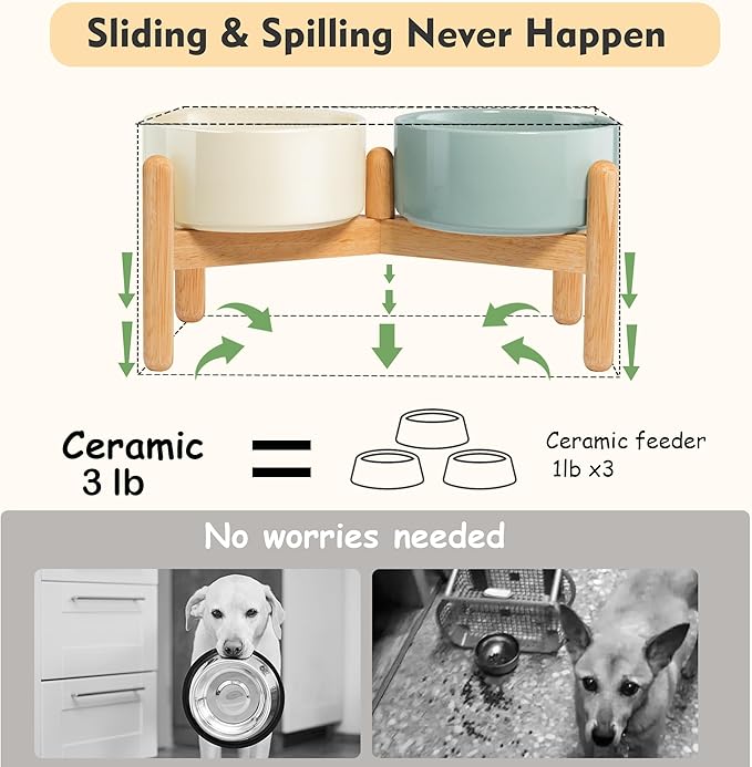 - Stable and Anti-Slip: The cross-frame design with heavyweighted ceramic dog bowls,rubber feet on the base provides excellent stability, preventing pets from knocking the bowls over and sliding
