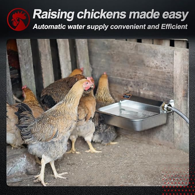 - [Patented Automatic Water Fill Dispenser]: The automatic water dispenser controls the water level with a valve, ensuring a steady supply without electricity, removing any shock risk. The valve automatically fills and stops filling at the set water level, providing clean water for pets and poultry. Eco-friendly and safe, it's ideal for both indoor and outdoor settings