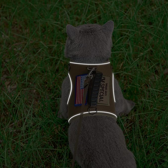 - Quality Material: The harness is made of durable polyester, and we adopted an air-mesh design, which is very soft and breathable for cat wearing. Even though on hot days, your cat still will feel cool and comfortable. Besides, the harness is so lightweight, your cat won't feel any pressure during walking or running