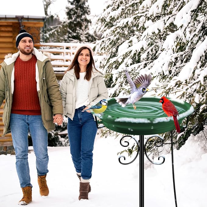 - 【Best Gifts for Feathered Friends】The heated bird bath for outside winter can be used to provide gentle water for your birds during the cold season, let your bird friend have happy winter days; You will be very relaxing to watch varieties of birds coming to drink, bathe or a moment of rest in the water during a beautiful snow storm