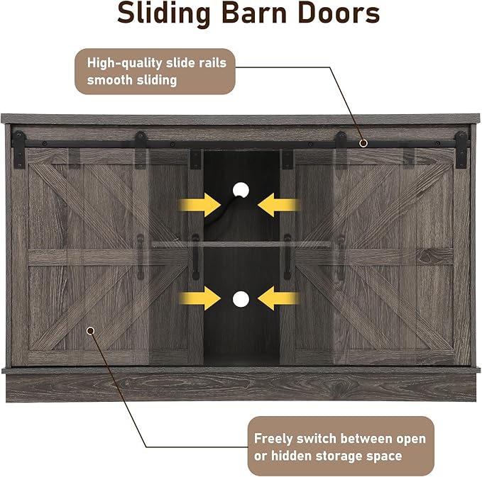Farmhouse 55-75 Gallon Fish Tank Stand with Power Outlet, Aquarium Stand with Cabinet&Sliding Barn Door, Heavy Duty Reptile Tank Stand for 2 Fish Tank/Turtle Tank/Reptile Terrarium, Grey