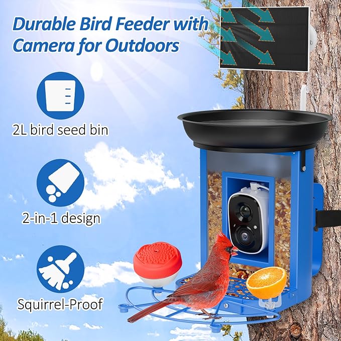 • Special Feature : Built-In 2K HD Camera, Removable 2-in-1 Bathing & Drinking Roof, Solar Powered, Squirrel Proof, Weatherproof Built-In 2K HD Camera, Removable 2-in-1 Bathing & Drinking Roof, Solar Powered, Squirrel Proof, Weatherproof