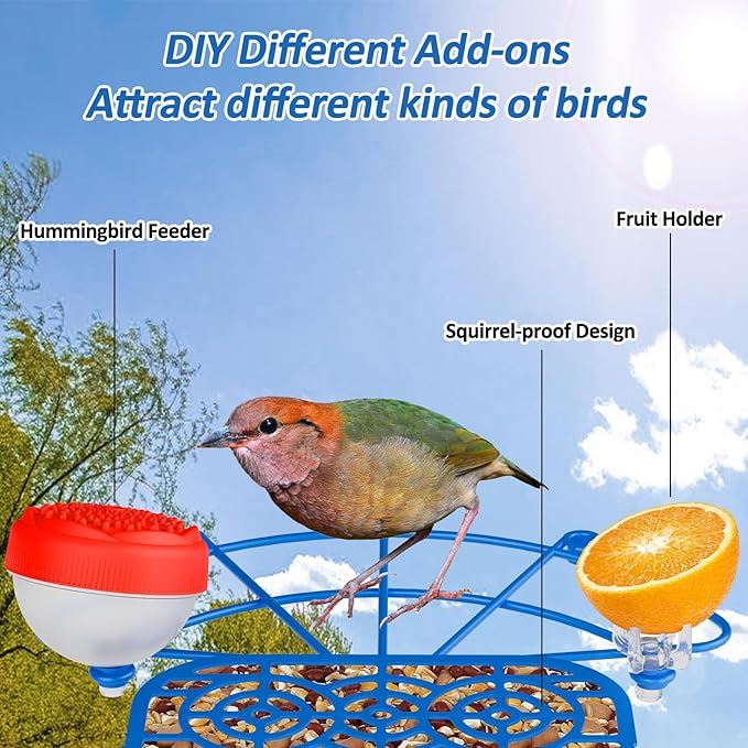 • 🛠️Updated DIY Add-ons🦜Our smart bird feeder includes nectar feeders, fruit forks and anti-squirrel design, attracting more birds to your backyard. These accessories attract various bird species, enhancing your birdwatching experience. Whether you're a birdwatcher or a garden wildlife enthusiast, you'll enjoy observing the diverse visitors and noting their differences