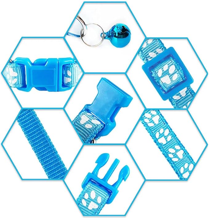 - 【Paw Print Dog Leash:】Paw print on both sides of the leash.The puppy collar with bell .With Pawprint pattern, quick-release buckles, durable nylon, reflective straps and ringing bells.