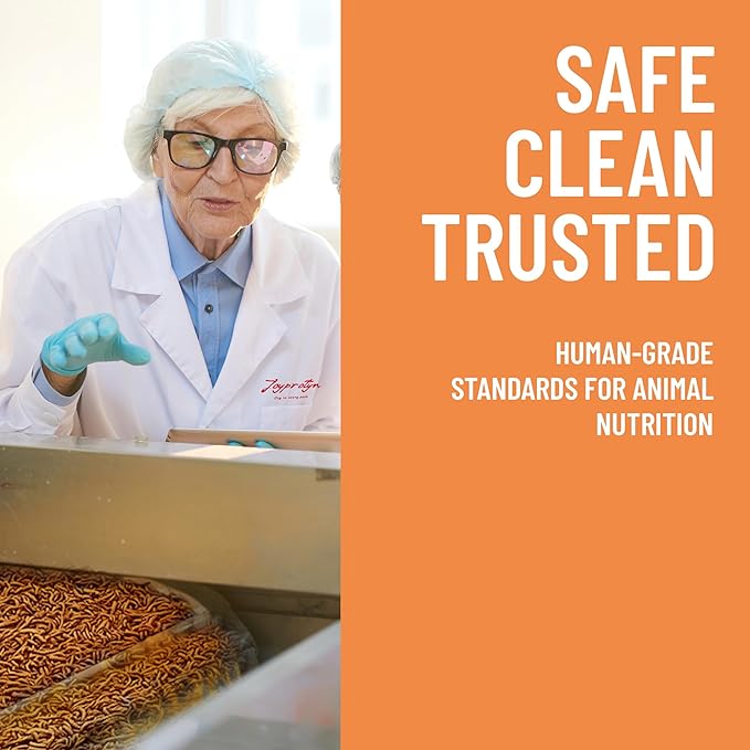 - High-Calcium Chicken Grubs: Joyprotyn’s BSFL (Black Soldier Fly Larvae) feed offers 85x the calcium of traditional dried mealworms, enhancing eggshell strength and promoting bone health in your hens for sturdy eggs. This high-calcium feed is perfect for robust egg production and overall poultry well-being.