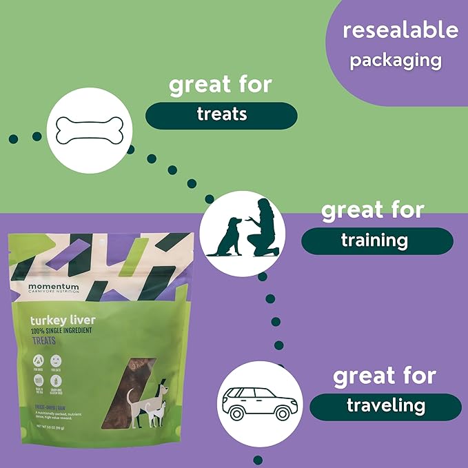 Momentum Carnivore Nutrition Freeze-Dried Turkey Liver Dog Treats – Single-Ingredient, Dog & Cat Treats – High-Protein, Grain-Free– 3.5 oz Bag