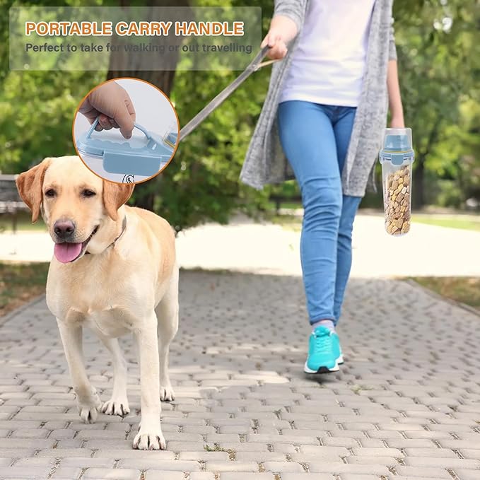 Airtight Dog & Cat Food Container - Measuring Cup/Pour Spout - Portable, Transparent - Blue
