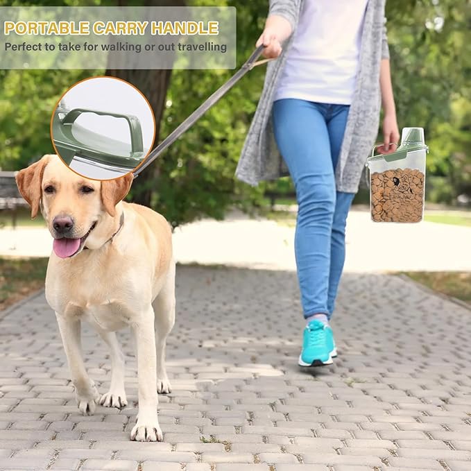 Pet Food Storage Container with Measuring Cup and Pour Spout - Airtight, Leakproof, Portable Cat Food Dispenser - Green
