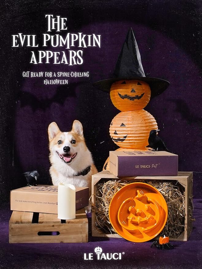 LE TAUCI Ceramic Slow Feeder Dog Bowls Small Breed, 0.6 Cups Dog Food Dish for Fast Eaters, Puzzle Bowl for Small Dogs and Cats,Pumpkin Orange