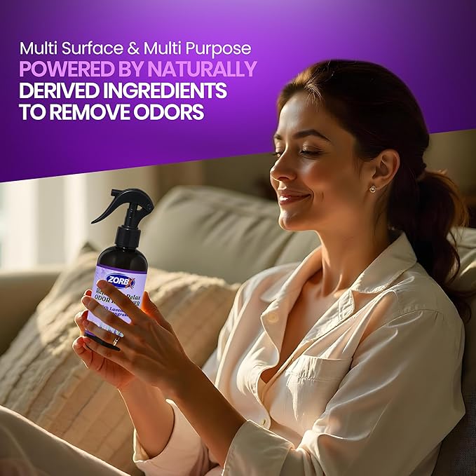 - Multi-Purpose Lavender Odor Eliminator Spray & Air Freshener: Effectively eliminates tough odors from shoes, carpets, upholstery, pet areas, trash cans, fridge, laundry, closets, basements, cars, and more. This lavender air freshener spray leaves your surroundings smelling fresh without harsh chemicals or residue.
