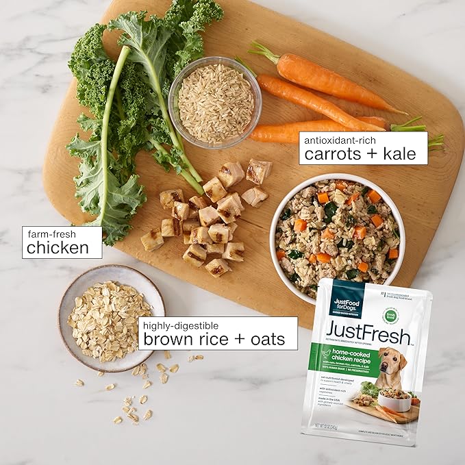 - USE AS A FULL MEAL OR DOG FOOD TOPPER FOR PICKY EATERS: While JustFresh is formulated as a complete and balanced meal, our soft dog food can also be used as dog food toppers for dry food for those picky eaters.