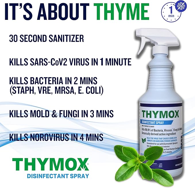 - Hospital Grade Disinfectant: Our thyme disinfectant is a botanical disinfectant that meets hospital-grade standards. This all natural disinfecting solution is a food grade disinfectant spray and a natural disinfecting option that is effective yet safe for all settings.