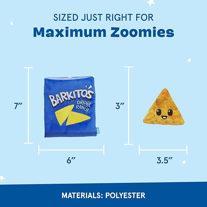 - Crazy Crinkle: Drool Ranch Chips is designed for dogs who crave that satisfying “crunch”! The crazy crinkle sound adds extra excitement to playtime, making it perfect for keeping distracted pups focused and entertained with every bite they can hear!