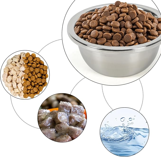 - Large Capacity Dog Bowls:Each Bowl Holds up to 48 ounces; perfect for dry kibble, wet food, treats, or water.