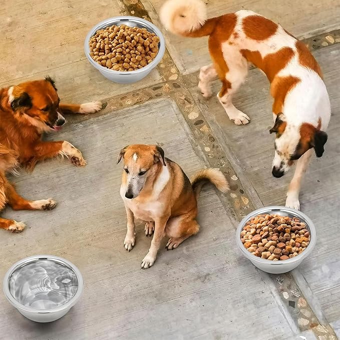 - Set of 3 stainless steel Dog Bowls:food and water bowls for large and middle dogs.
