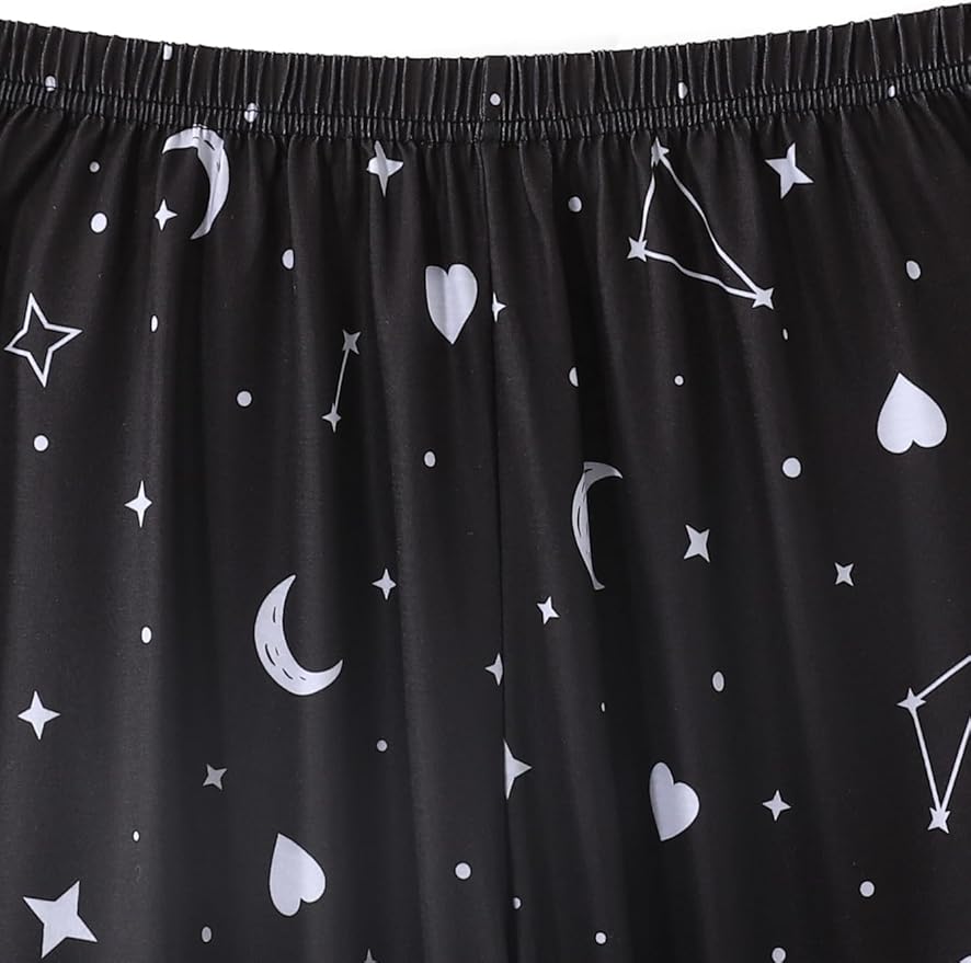 - Pajama Bottoms: Long pajama pants with soft elastic waist and classic moon and stars print to make relaxing as comfortable as possible.