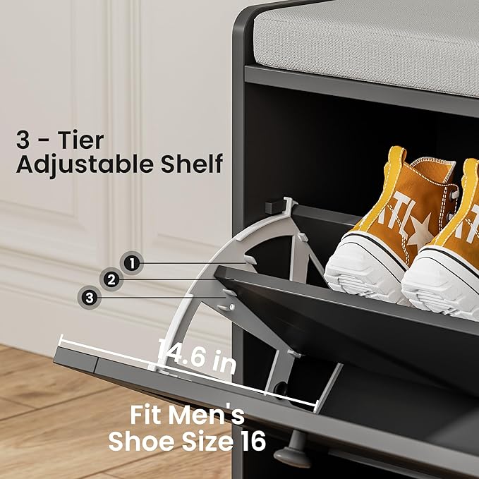 - Stylish and Versatile Design: Our Shoe Storage Bench boasts a classic design that fits seamlessly into any entryway or bedroom, making it the perfect storage solution that complements your decor while keeping your space organized.