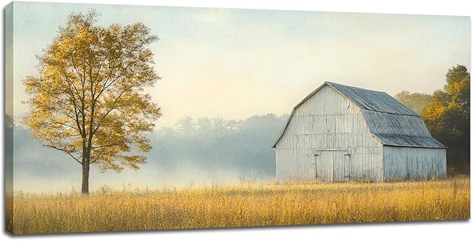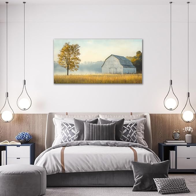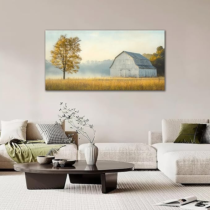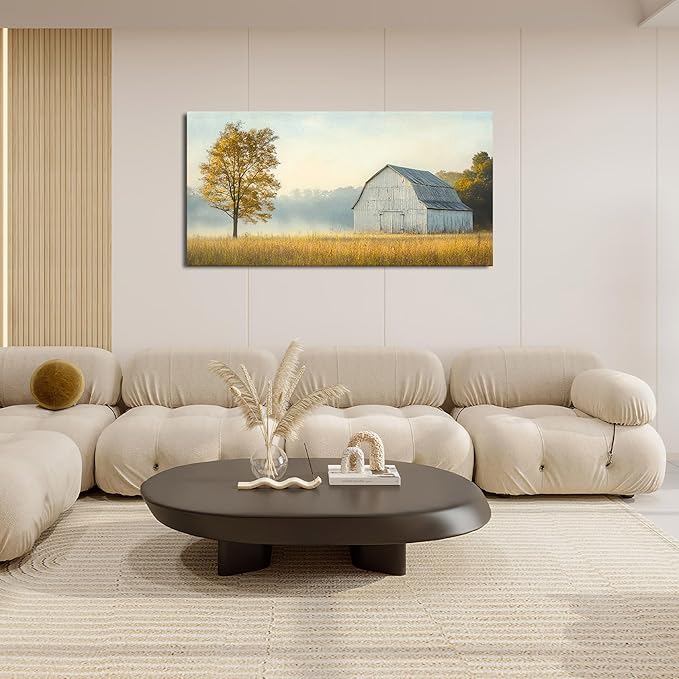 Large Farmhouse Barn Wall Art Country Landscape Canvas Living Room Rustic Tree Pictures Framed Prints Oversize Wall Decor Painting Artwork for Bedroom Dining Office Home 60"x30"