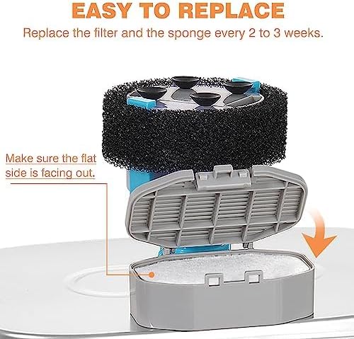 - 【Keep Healthy】The fountain filter removes any dirty impurities and unpleasant odors, ensuring that your pet gets the clean water it needs for daily health. Pet water fountains are a great way to keep your pet hydrated and healthy. Also, pre-filter sponge around the pump to better filter impurities and extend the life of the pump.