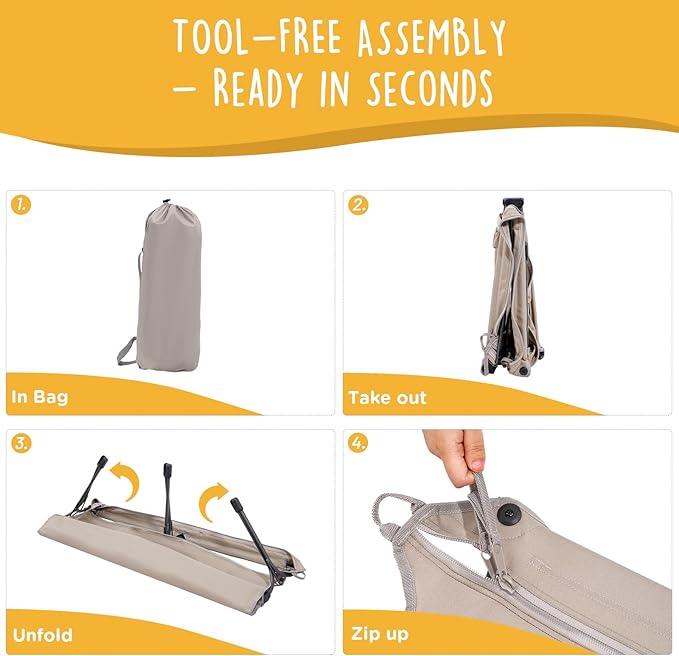 - COMPACT & FOLDABLE: This foldable dog bed features an ultra small 25"x8.5" folded size perfect for traveling & camping; zip it up in 15 seconds for a comfortable outdoor dog bed for your furry friend.