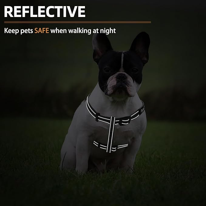 - [Durable & Comfortable Material] - High-quality nylon fabric with high-density webbing to add durability. The webbings have been widened, and the surface is very smooth, so the harness's comfort will be better. Your dog will enjoy the daily walk in this comfortable dog harness!