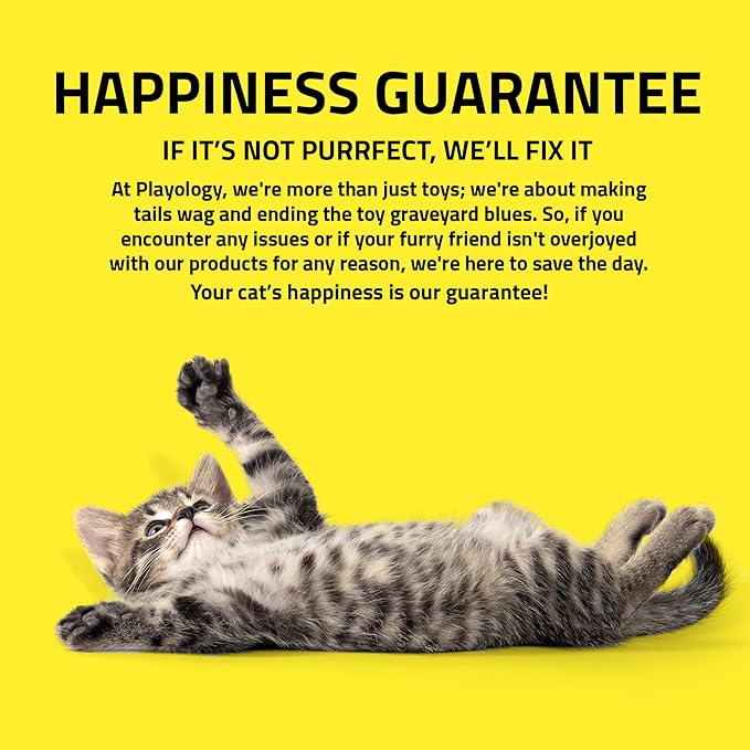 - HAPPINESS GUARANTEE: At Playology, we're more than just toys; we're about making tails wag and ending the toy graveyard blues. So, if you encounter any issues or if your furry friend isn't overjoyed with our products for any reason, we're here to save the day. Your cat's happiness is our guarantee!