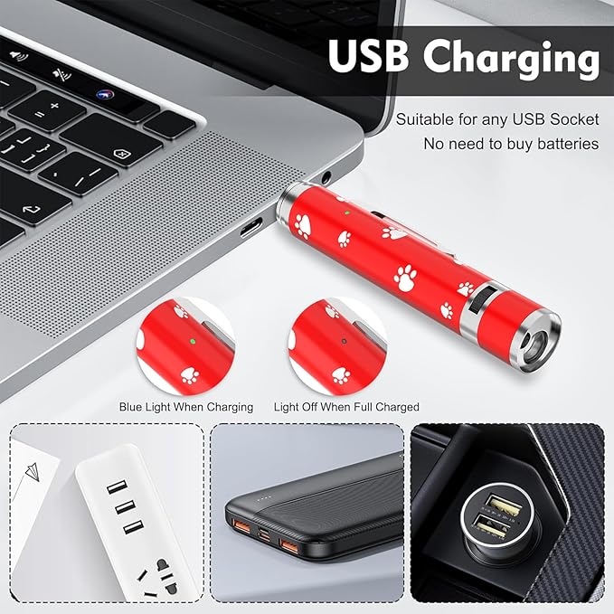 - Multi-scenario application: The red mode is great for interactive play with your pet, the purple mode can be used for detecting counterfeit bills and pet health checks, and the white mode is great for emergency lighting at night. Whether it's for home use, outdoor activities, classroom teaching, or while traveling, this cat toys are easy to use