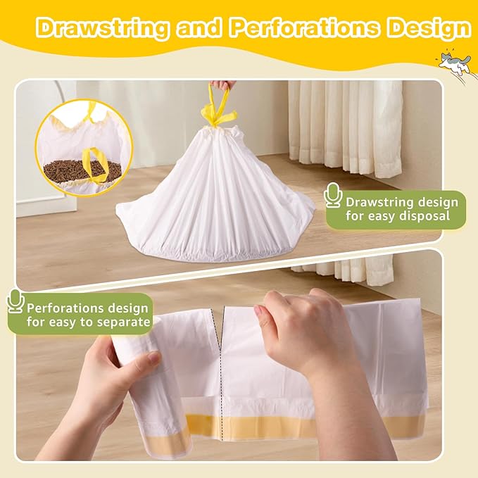 - 🍃Super Convenient Drawstring Design: Each litter box waste bag is designed with a convenient drawstring, every time you change the litter, you just need to pull up the drawstring to lift the bag and throw it away, it is clean and hygienic for better maintenance and cleaning of the litter box, which brings convenience for your daily life.