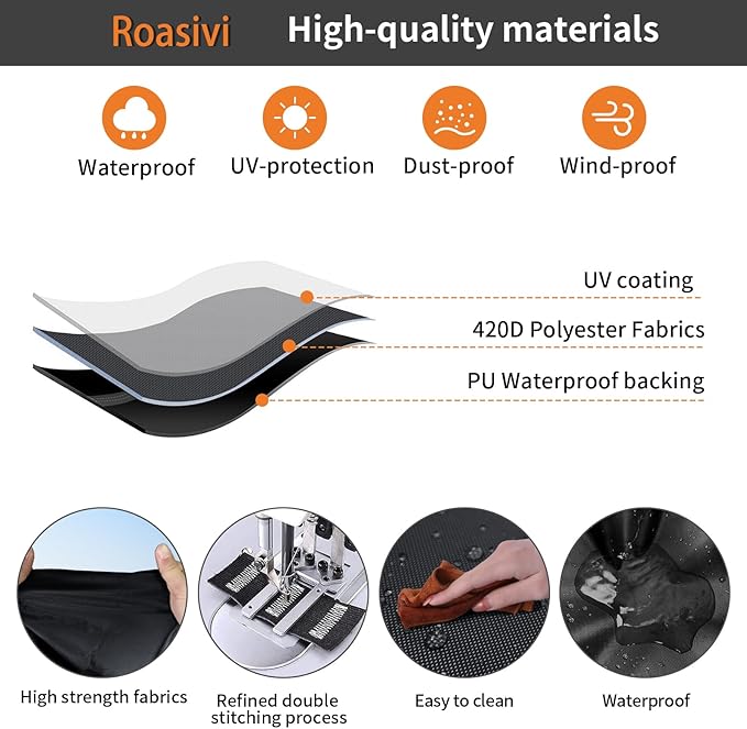 - 【QUALITY MATERIALS】: Roasivi Universal Large Birdcage Cover is made of moderate hardness 420D waterproof vinyl PU composite fabric, which has good tear resistance, breathability, and waterproof, and can provide a comfortable sleeping environment for your pet.