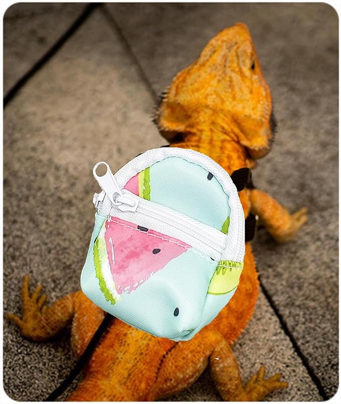 - The harness leash for small reptile is a gift for you cute pets, with the bearded dragon harness leash you can easily have relaxing time with your pets by walking them outside to get some fresh breath. Our harness leash with a small backpack decorate your pet,at the same time the adjustable shoulder strap effectively prevent any chance of escape.