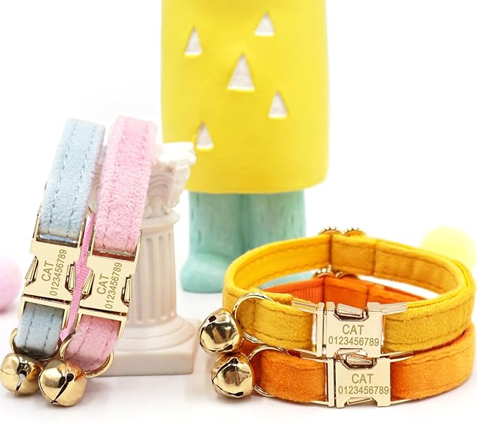 - Personalized Cat Collar with Name Plate: No need extra ID tag for your cat. Dozens of fashion patterns for your choice to make cats look attractive and unique. Customized Cat Collar Great for your boys and girls Cats
