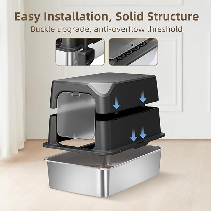 - DURABLE & LONG LASTING: The Amniau enclosed stainless steel cat litter box is engineered to last up to 5 years without losing shape. Unlike plastic, stainless steel reduces odor and is easy to clean, maintaining a cleaner environment with only 20 pounds of cat litter.