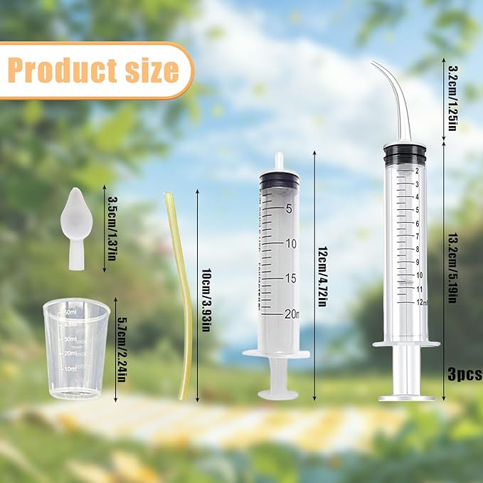 - 【Package Includes】3 pcs 12ml feeding syringe, 1pc 20ml feeding syrine, 1 pc measuring cup, 1 pc spoon, 1 pcs extension injection catheters.