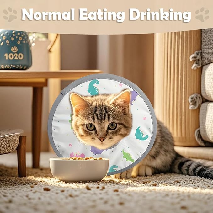 - 【PROTECTION FOR YOUR PETS】The cute pet recovery collar can prevent your pets from biting and licking the wound after surgical operation or injury. If your cat's wound is on the foot (like front and back paws), it is recommended to buy a larger size when cat's neck circumference allows.