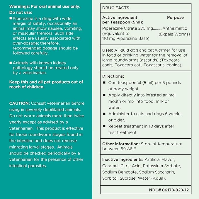 Dog and Cat Dewormer Liquid - 4 oz Wormer Solution to Paralyze and Expel Roundworms - Kitten and Puppy Dewormer
