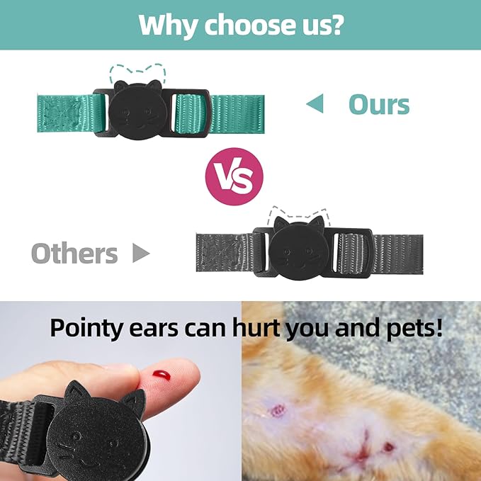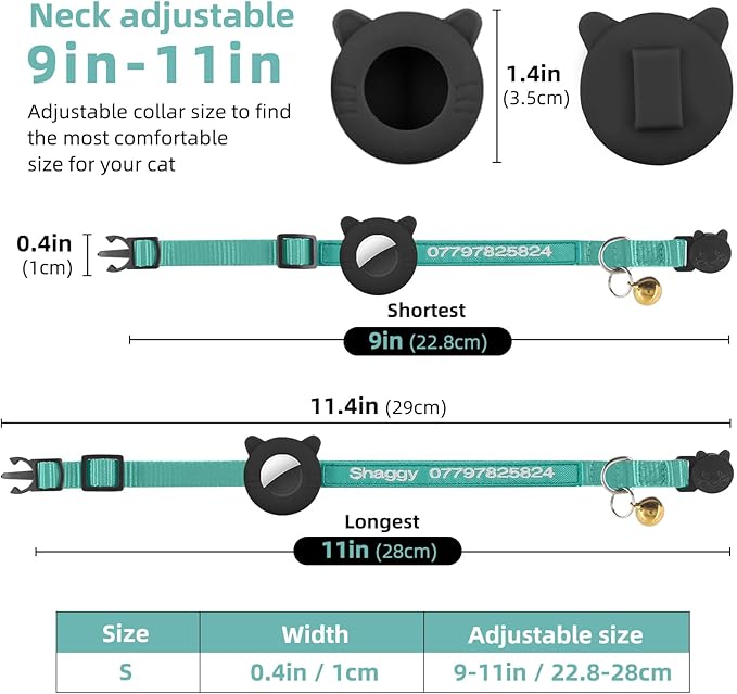 - Safty Buckle: The airtag cat collars feature a safty quick-release buckle and a non-corrosive stainless steel D-ring.2/5 inches in width and completely adjustable from 7-12 inches in length