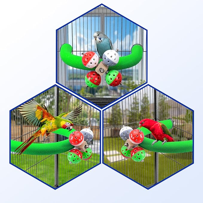 U Shape Parrot Perch Stand Toy Bird Platform Sand Paw Grinding Clean Stick Exercise Conure Budgie Cockatiel Cage Accessories (Green-Rotate)