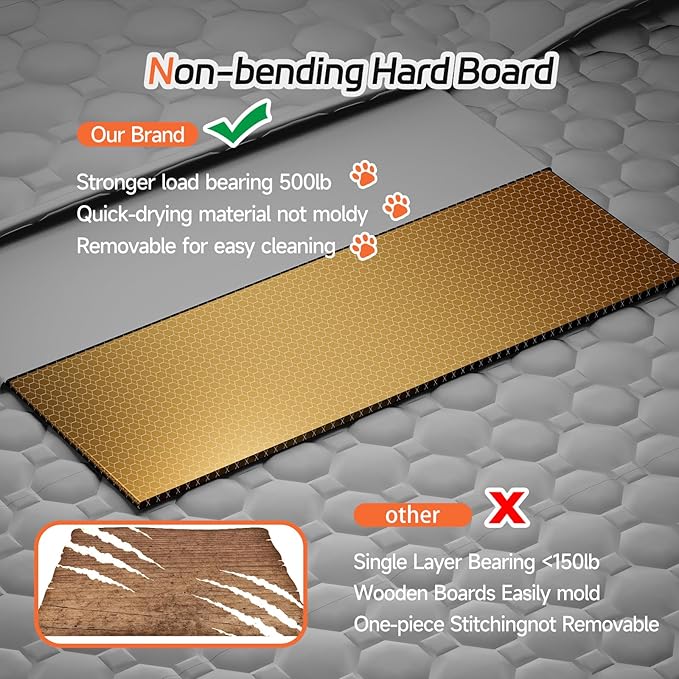- HARD BOTTOM DESIGN FOR ENHANCED STABILITY AND COMFORT: This dog car seat cover features a strong, reinforced base that supports up to 500 lbs, providing stability for large dogs or multiple pets. The firm base holds its shape, reduces sliding, and ensures a secure, comfortable ride.