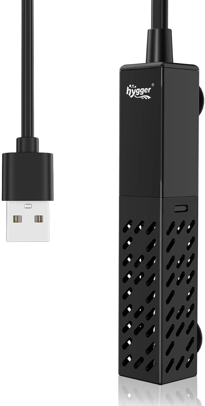 - 5V/2A USB Power Supply: This 5V/2A USB power supply is very safe. You are away from the worry of electric shock to your beloved fish! Use a 5V/2A power adapter, or a 5V/2A power bank to supply power to the heater. (Power adapter or power bank is not included)