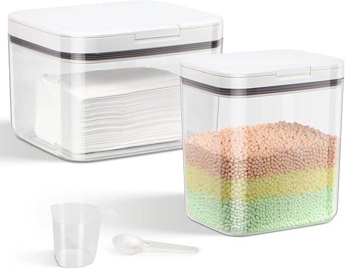 - Moisture-Proof Sealed Design: Keep your laundry supplies dry and fresh! Our laundry organizers feature an airtight seal to prevent moisture from entering, ensuring your detergent, dryer sheets, and scent boosters remain in top condition. The optimal solution for maintaining the quality of your laundry products