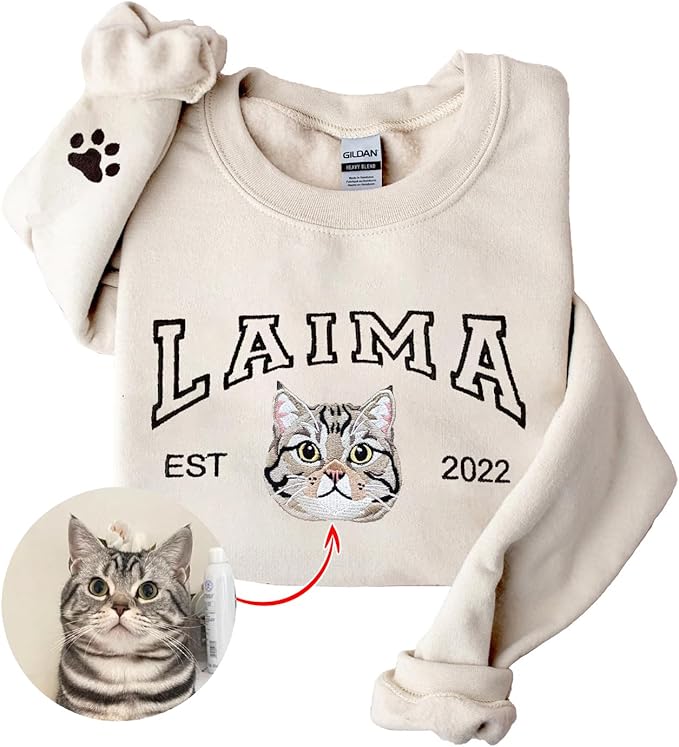 LOVELYPOD Custom Embroidered Dog Mom Sweatshirt with Dogs Names, Pet Photo Shirt, for Dog Lovers