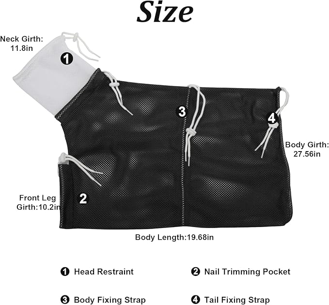 - 【Adjustable Drawstring】Cat bath bag covers the cat’s whole body, with 5 drawstrings. The new headgear drawstring is added to prevent being bitten by the cat’s teeth, and the foot drawstring prevents being scratched by the cat’s claws, easy to cut nails. The middle drawstring can better fix the cat’s body to prevent the cat from running away.