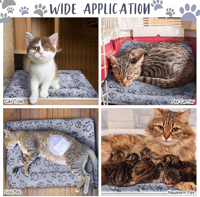 VitalCozy 2 Pack Self Warming Cat Mat Self Heating Pad Bed Reversible Machine Washable Reflects Body Heat Warm Thermal Pet Pad Crate Blanket for Feral and Indoor Cat (Grey,22'' X 18'',Dog Paw)