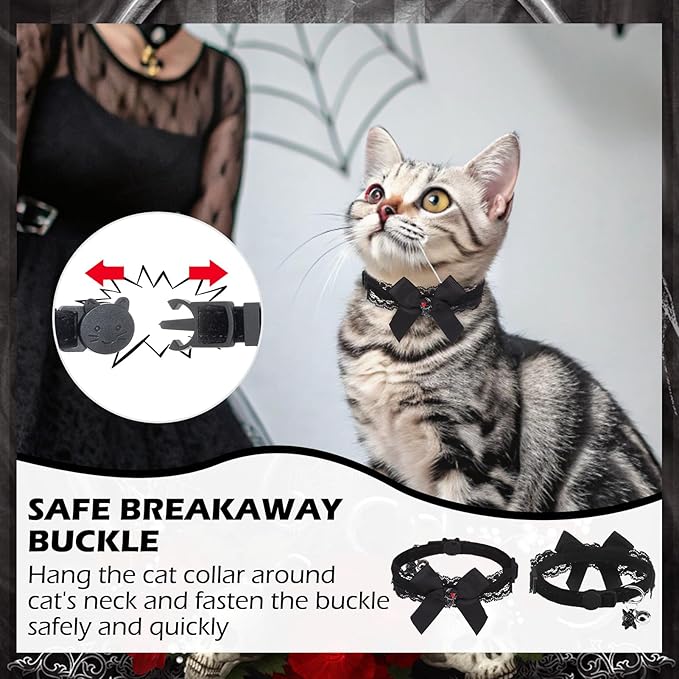 - INTERESTING DECORATION: The small bell on the cat collar can make the cat jingle when walking, in addition to the small bell also comes with a small black flower accessory to make your kitten more interesting and cute; if you have a gothic style cat climbing frame at home, then this cat collar must be its perfect partner, but also a great gift for cats!